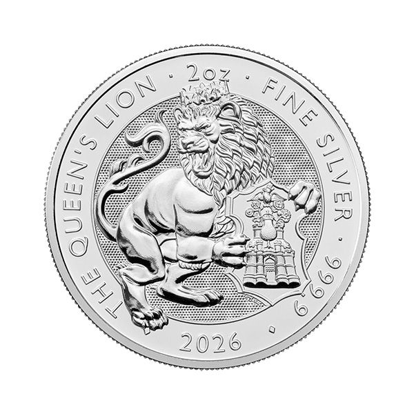 The Queen’s Lion 2026 2 oz sølvmynt er den åttende utgivelsen i The Royal Tudor Beasts Collection fra The Royal Mint.